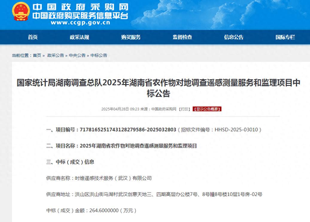 这种以技术驱动的数据化治理模式,不仅筑牢了湖南粮食安全基石,更将 “湖南经验” 推向更广领域。未来,时维遥感将持续深化卫星与无人机技术应用,拓展数据服务场景,为农业农村现代化、乡村振兴注入更多科技动能。