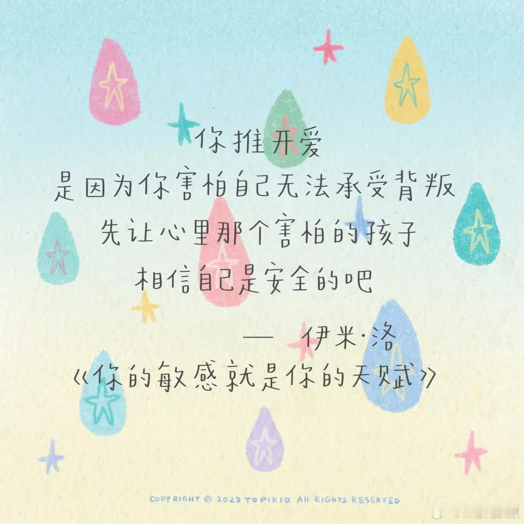 “你推开爱,是因为你害怕自己无法承受背叛。先让心里那个害怕的孩子相信自己是安全的吧。”