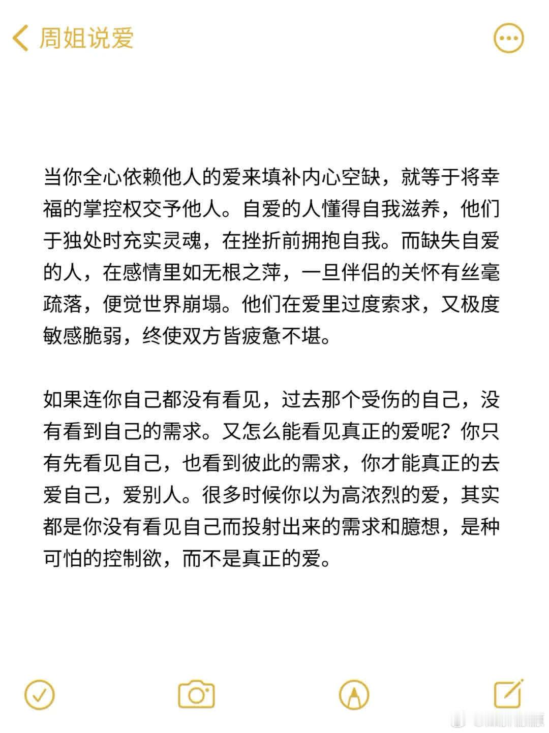 很多时候你以为高浓烈的爱,其实都是你没有看见自己而投射出来的需求和臆想,是种可怕的控制欲,而不是真正的爱。