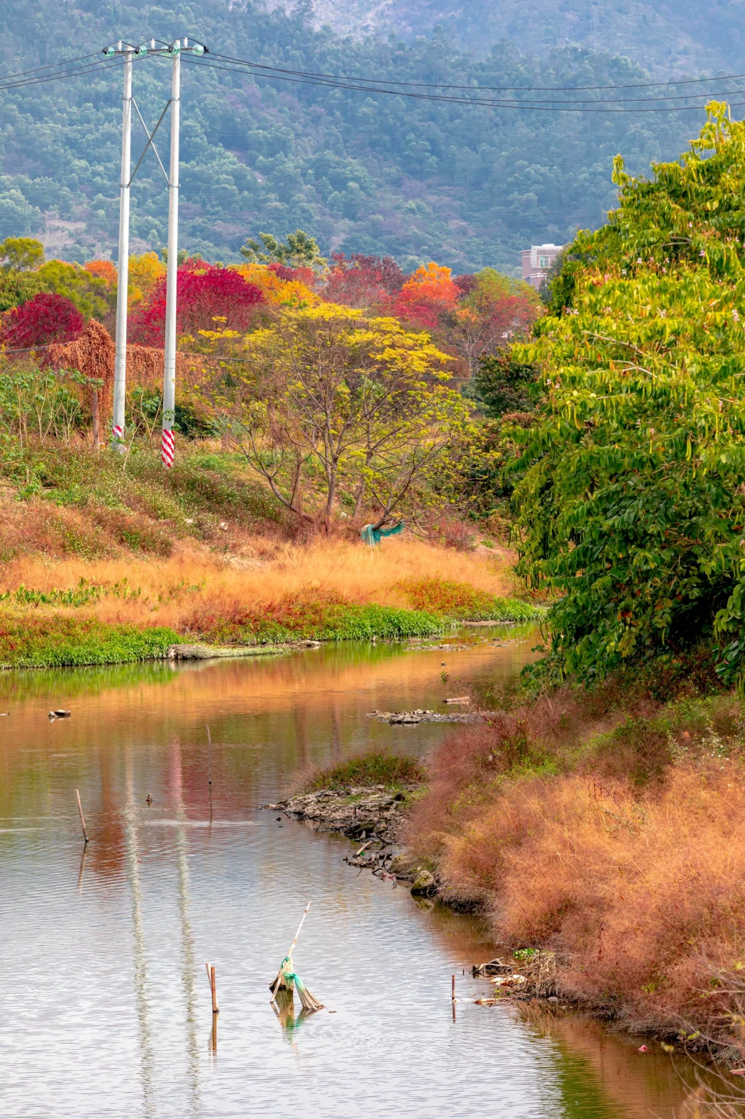 一般默认潮汕地区是没有秋天的颜色的,不过到了这里发现一片田野里藏着很多颗已经变色的乌桕树,于是在这里逗留了半天,拍下了“秋天的色彩”! * 📍:普宁果陇村 沿着河道,往鸡笼山的方向,两边都有一些变色的树,有些已经开始掉叶了,欣赏期也就十几天左右!