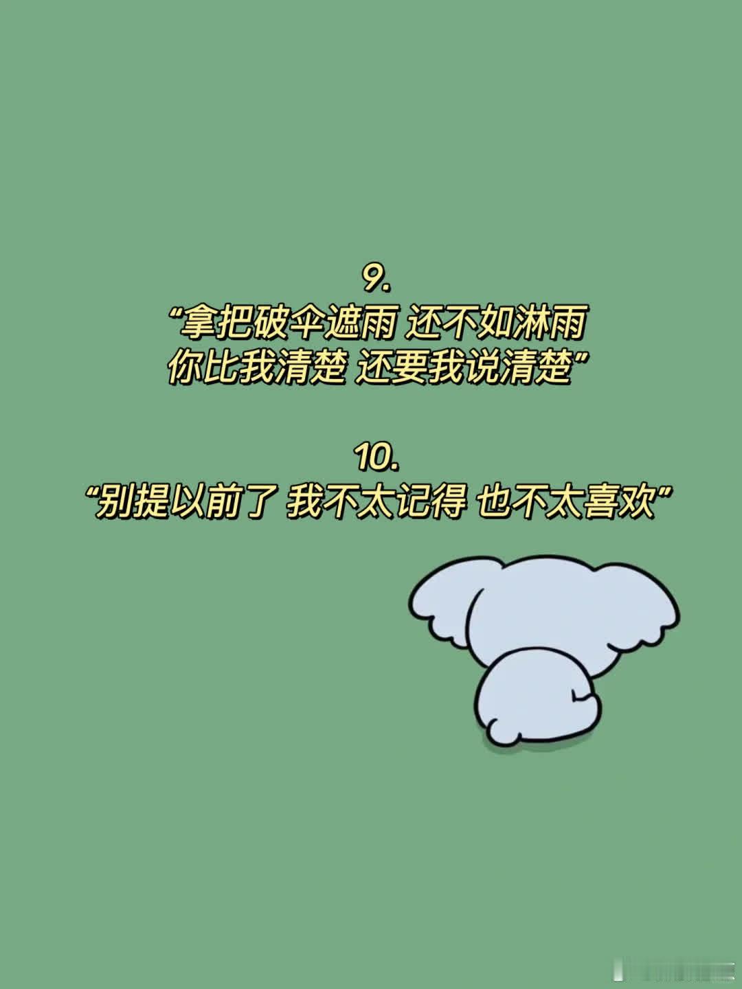 ☹️☹️9.“拿把破伞遮雨 还不如淋雨,你比我清楚 还要我说清楚”。