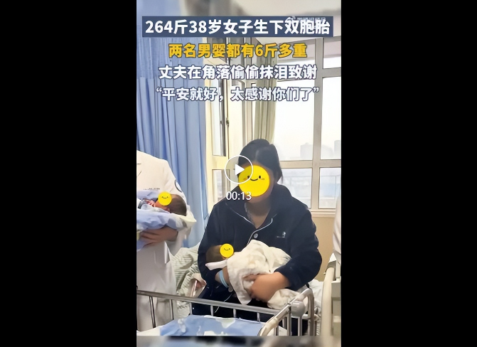 近日,安徽理工大学第一附属医院就一则让人感动的“大胖妈妈”的生育喜讯传了出来:身高180厘米、体重却高达264斤的38岁的张女士,平安诞下了两颗明珠——一对双胞胎男婴,每个孩子体重均达6斤以上。