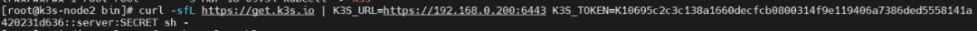 curl -sfL https://rancher-mirror.rancher.cn/k3s/k3s-install.sh | INSTALL_K3S_MIRROR=cn K3S_URL=https://192.168.0.200:6443 K3S_TOKEN=K10695c2c3c138a1660decfcb0800314f9e119406a7386ded5558141a420231d636::server:7826fe1a6a495ef77bfdcb217a771120 sh -kubectl get node
