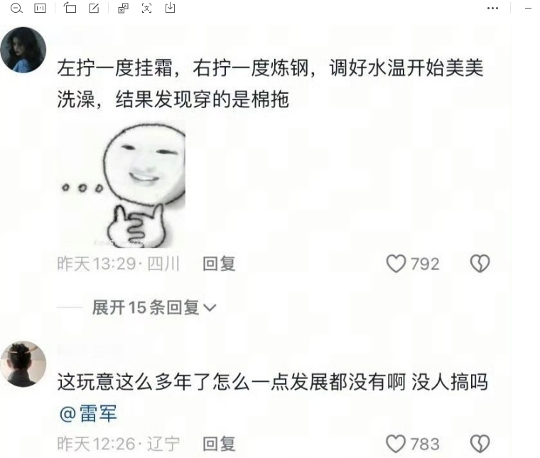 笑春风。 1 2025-01-20 11:10 热水器直接调到你要的温度,把手每次都扳到最热不就行了? 不会玩 回复 01-20 21:45 你那是燃气热水器或者是既热式电热水器,太阳能、小厨宝和普通电热水器呢?所以需要的只是一个恒温水龙头!