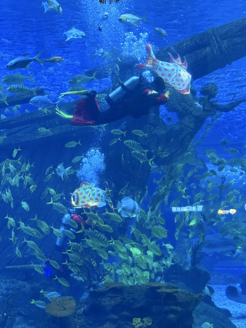 春节还在发愁去哪儿玩吗!? 推荐融创海世界这里新春氛围拉满⬆️ 好玩到不想回家! 一进园就被精致喜庆的新春美陈吸引 红色灯笼与金色装饰交相辉映🏮 浓浓的年味儿扑面而来🧧 海洋生物道具点缀其中 仿佛进入了梦幻海底世界