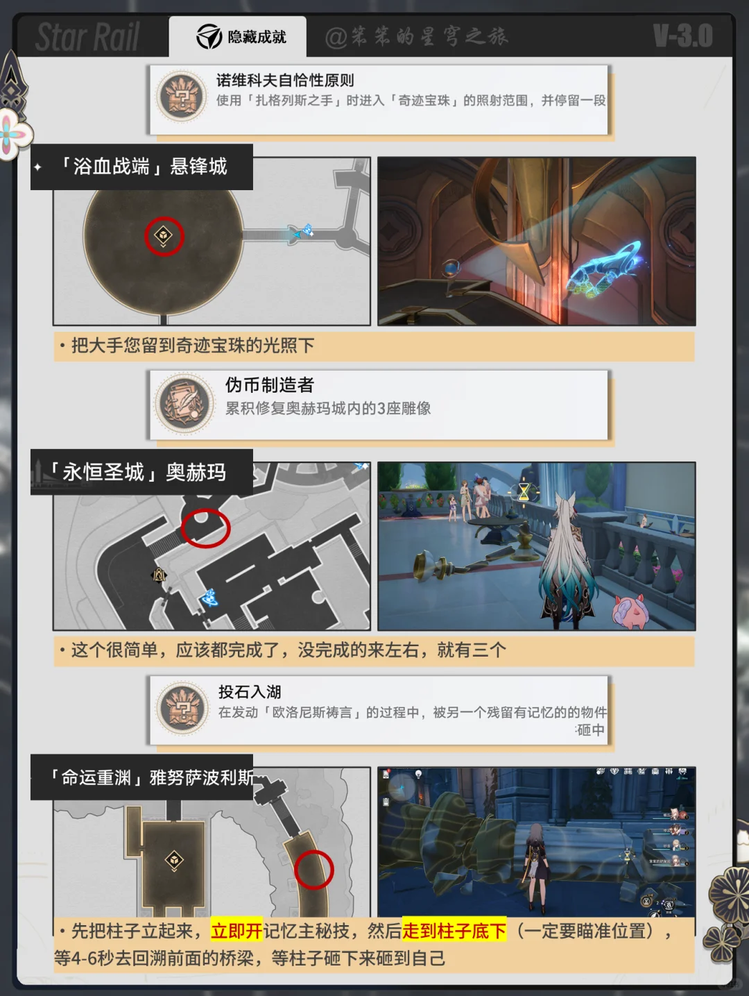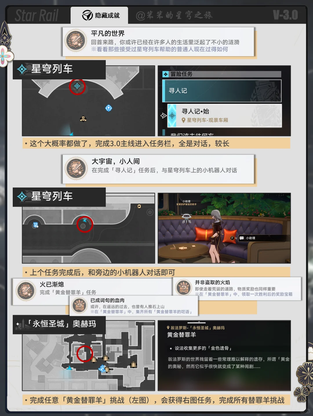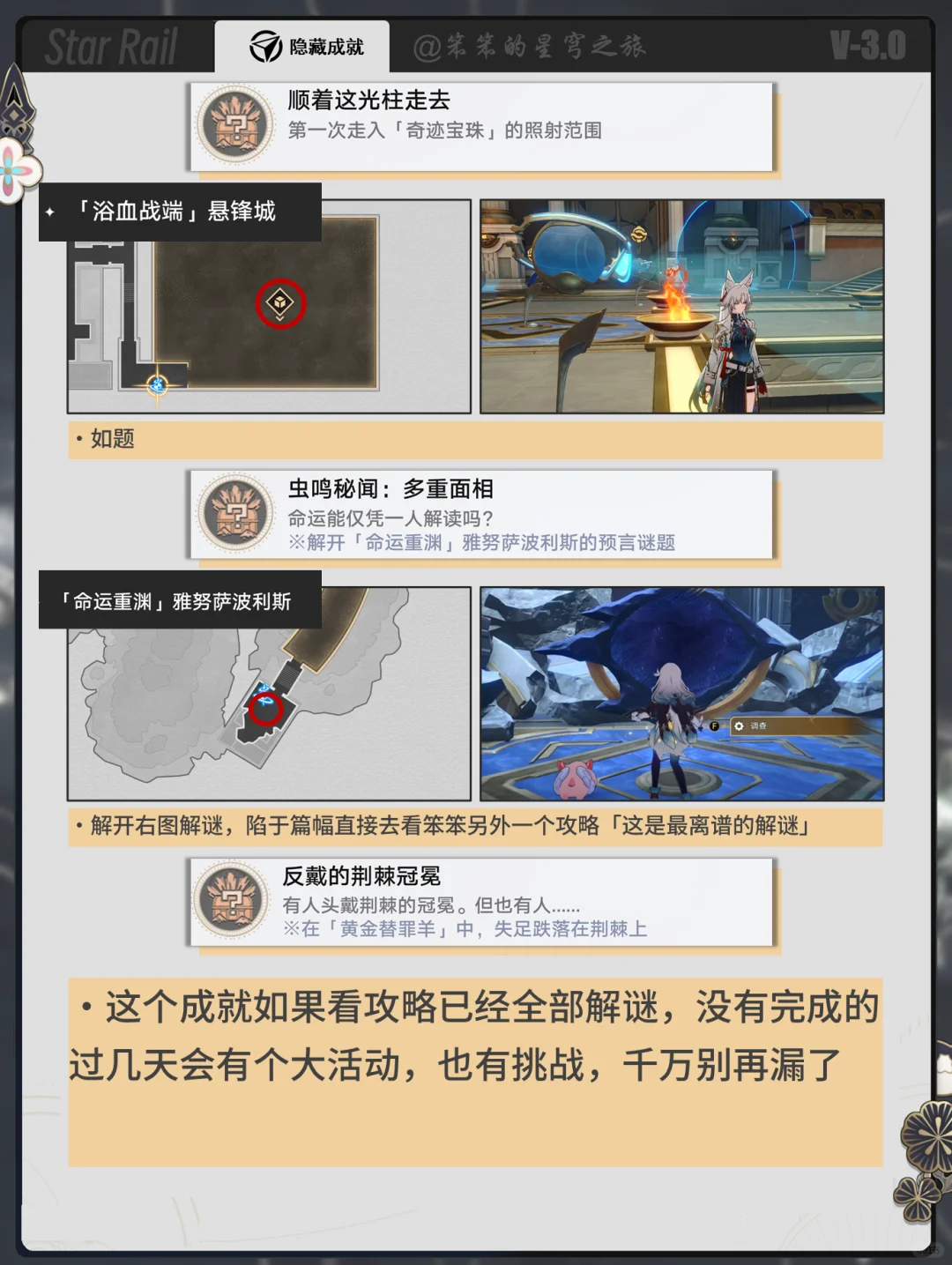 🐱大家好,我是笨笨的铲屎官 今天给大家带来的是第三批隐藏成就 这一次一共43个 加上之前的第一批40个 第二批14个 加起来有97个成就了 ▶与你同行的回忆合集都全了 就差「众秘探奇」的10个 和「战意奔涌」的一批战斗成就 因为这些不成系列,而且不是一张图就能写清楚 所以到时候就看情况补充