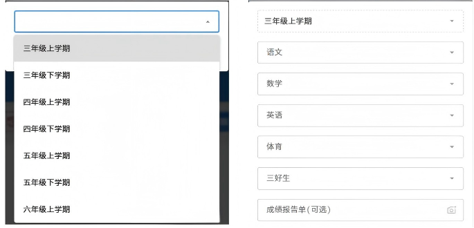 登记覆盖三年级上至六年级上,需填写语数英 + 体育成绩及当年三好生情况,可附成绩报告单;
