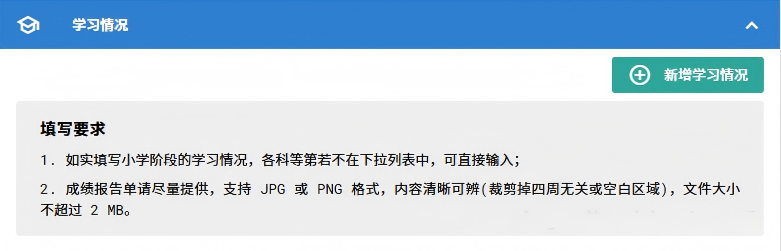 此外,平江中学要求登记 1~6 年级在校情况及小学期间荣誉,
