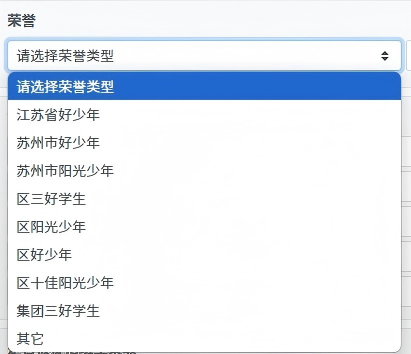 荣誉仅限区县级以上综合性荣誉,如三好、好少年、美德少年等。