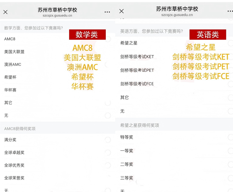 格外看重高含金量竞赛证书,数学类需登记 AMC8、美国大联盟、希望杯等竞赛参与及获奖情况;