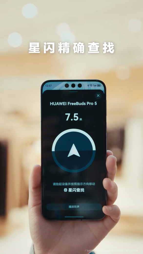 另外,查找设备的星闪™查找功能也完美解决最后100米的近距离查找,当我通过导航达到丢失设备附近时,手机的“导航”按钮会自动切换为“精确查找”按钮,点击后,屏幕上就会出现直观的方向和距离指引,跟着指引很快就能把遗失设备精准定位出来。