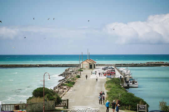 奥马鲁的建筑物和风景都透露着原始,粗粝的气息。 杂乱无章的排列, 野蛮生长的植物, 焦灼的紫外线。 如同瞬息全宇宙[搜索高亮]的石头宇宙一般原始, 而后瞥见这样蓝绿色或者称之为Tiffany蓝的海。