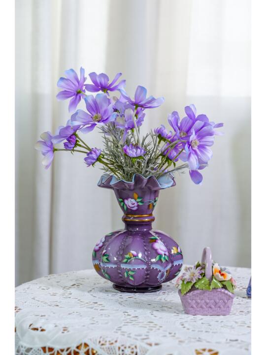 这只紫色南瓜造型的芬顿复刻版花瓶,摆在客厅C位,颜值直接拉满!