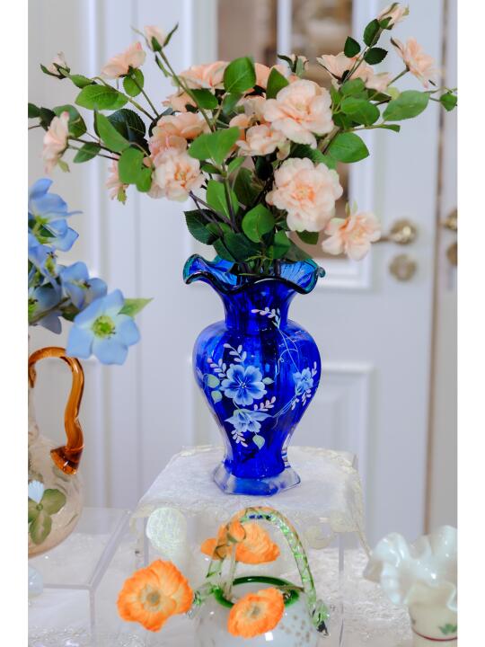 芬顿复刻花瓶 蓝色琉璃 手绘艺术 家居美学 用花瓶点亮家 桌面花瓶