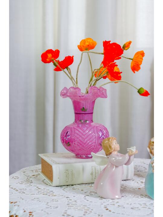 🌸先看这粉色芬顿手绘琉璃花瓶,柔和的马卡龙粉,像春日里盛开的烂漫樱花,娇嫩又温柔。瓶身的手绘图案细腻精美,每一笔都勾勒出复古与优雅。光线洒下,琉璃折射出梦幻光芒,自带氛围感滤镜。