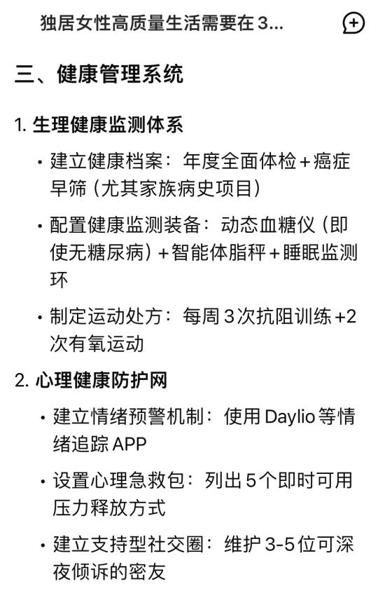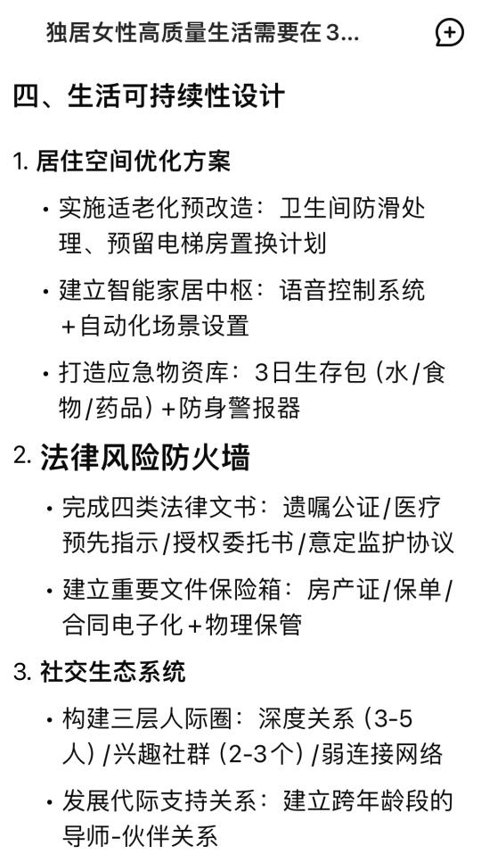 从经济,安全,医疗等方面分析 这份比较适合30+独居女性 可以根据自己的情况修改哦