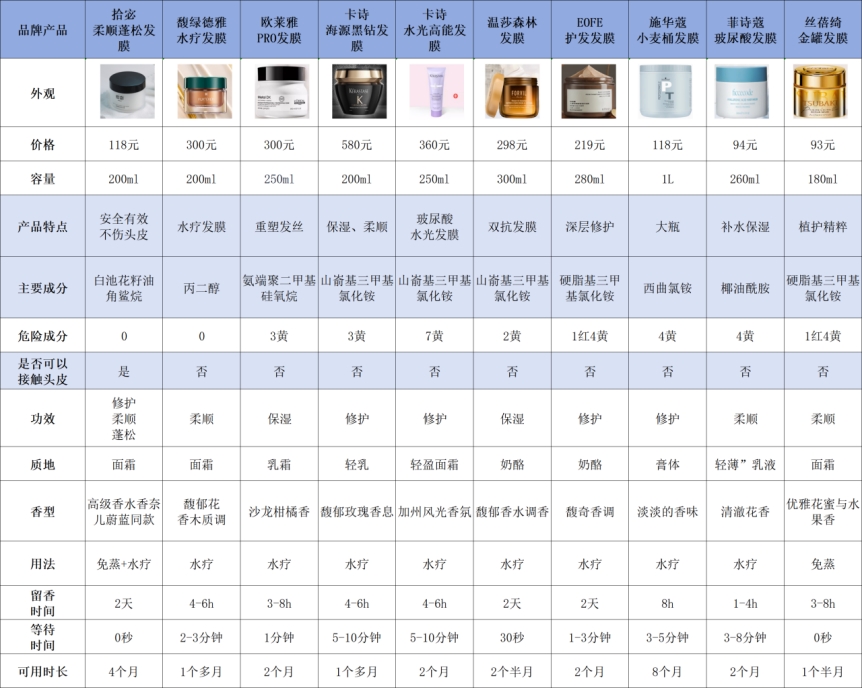 看了之前的选购要点,你选发膜是不是不再那么犯难了?怕大家对比麻烦,我把几款常用实测发膜做成表格,标清每次用后的打结程度、顺滑感受,希望这些真实体验能帮你少走弯路呀。
