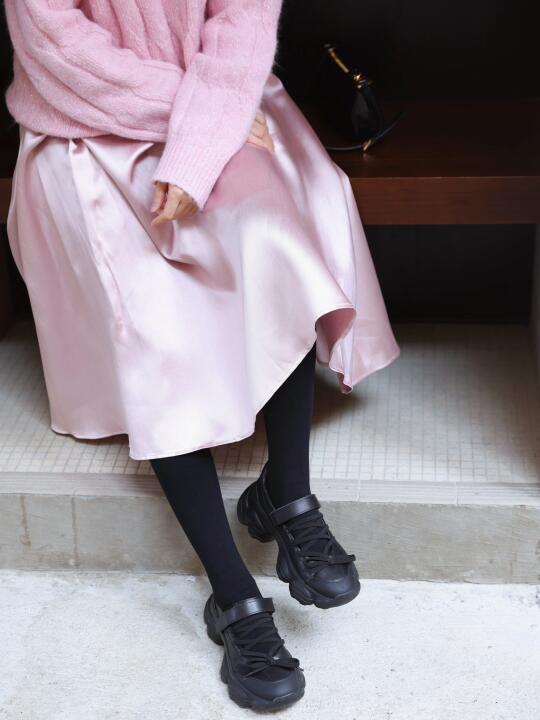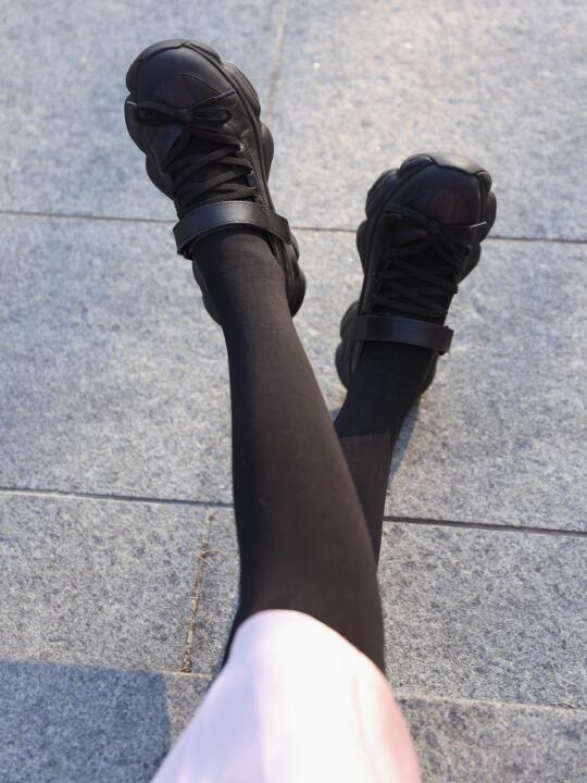 5.5cm超轻橡胶发泡底,如云朵般回弹承托,每一步都像踩在柔软的力量之上。飞织拼接工艺勾勒出力量感的线条,仿佛诉说着每一位女性“破茧成蝶”的故事。