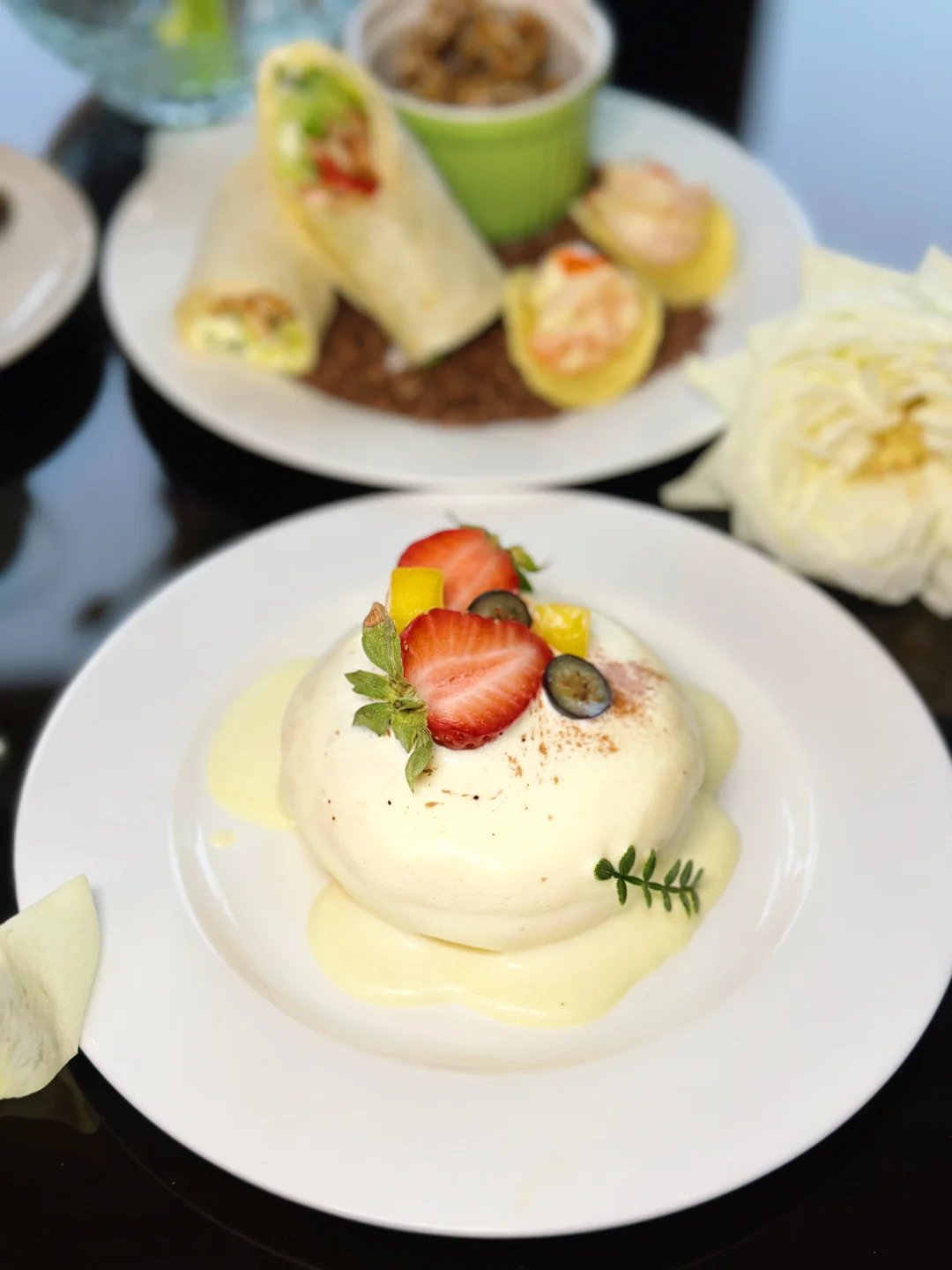 这里的舒芙蕾真的很好吃,松松软软,草莓敲大一个🍓,吃起来不会很甜,爱吃✨