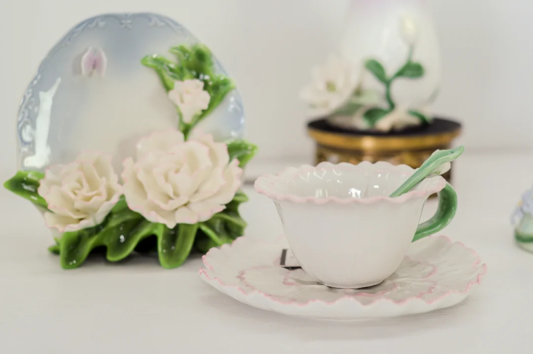 高温骨瓷 手工捏花 赏盘 家居好物 家居美学 工艺品摆件 礼物