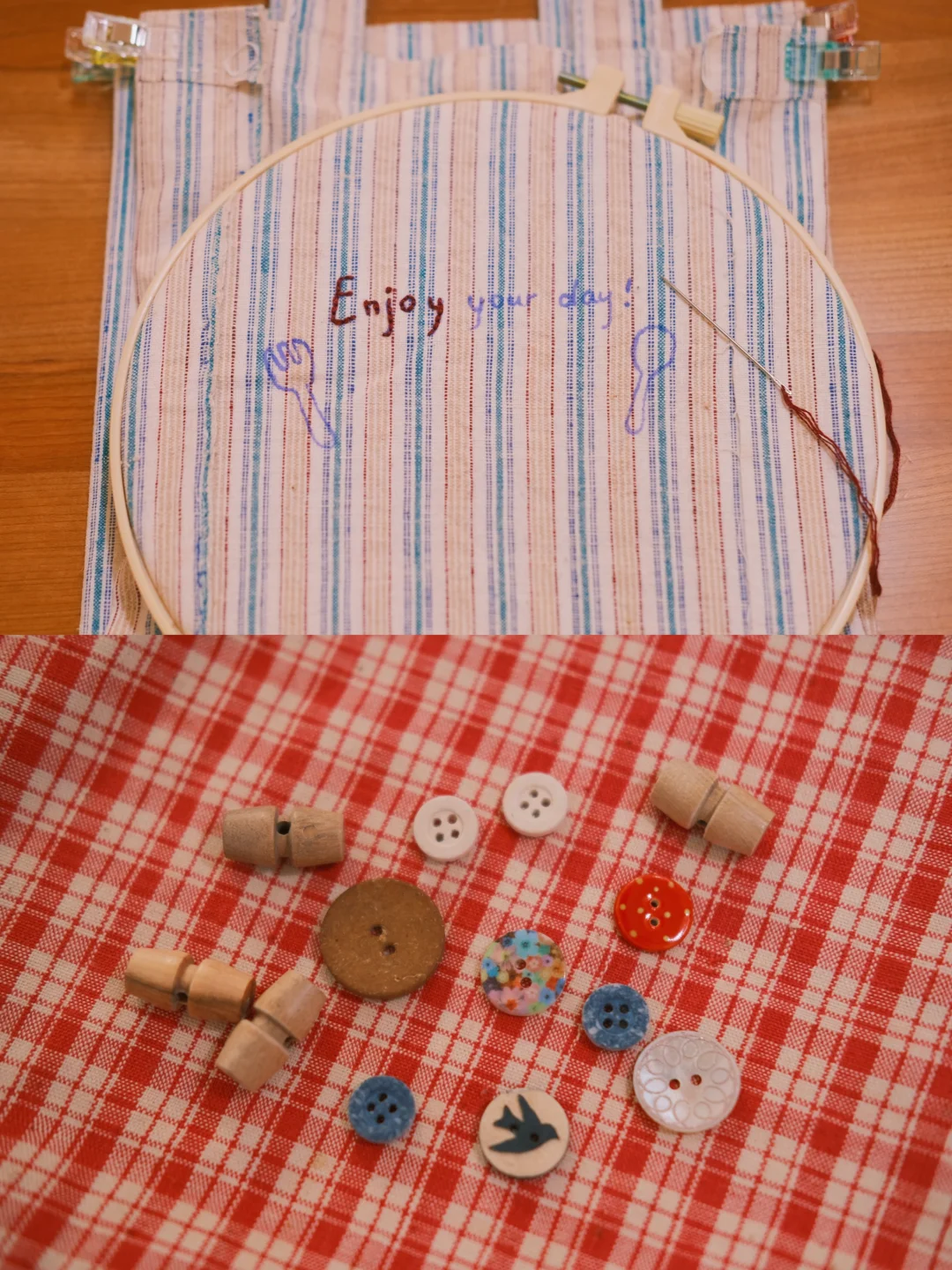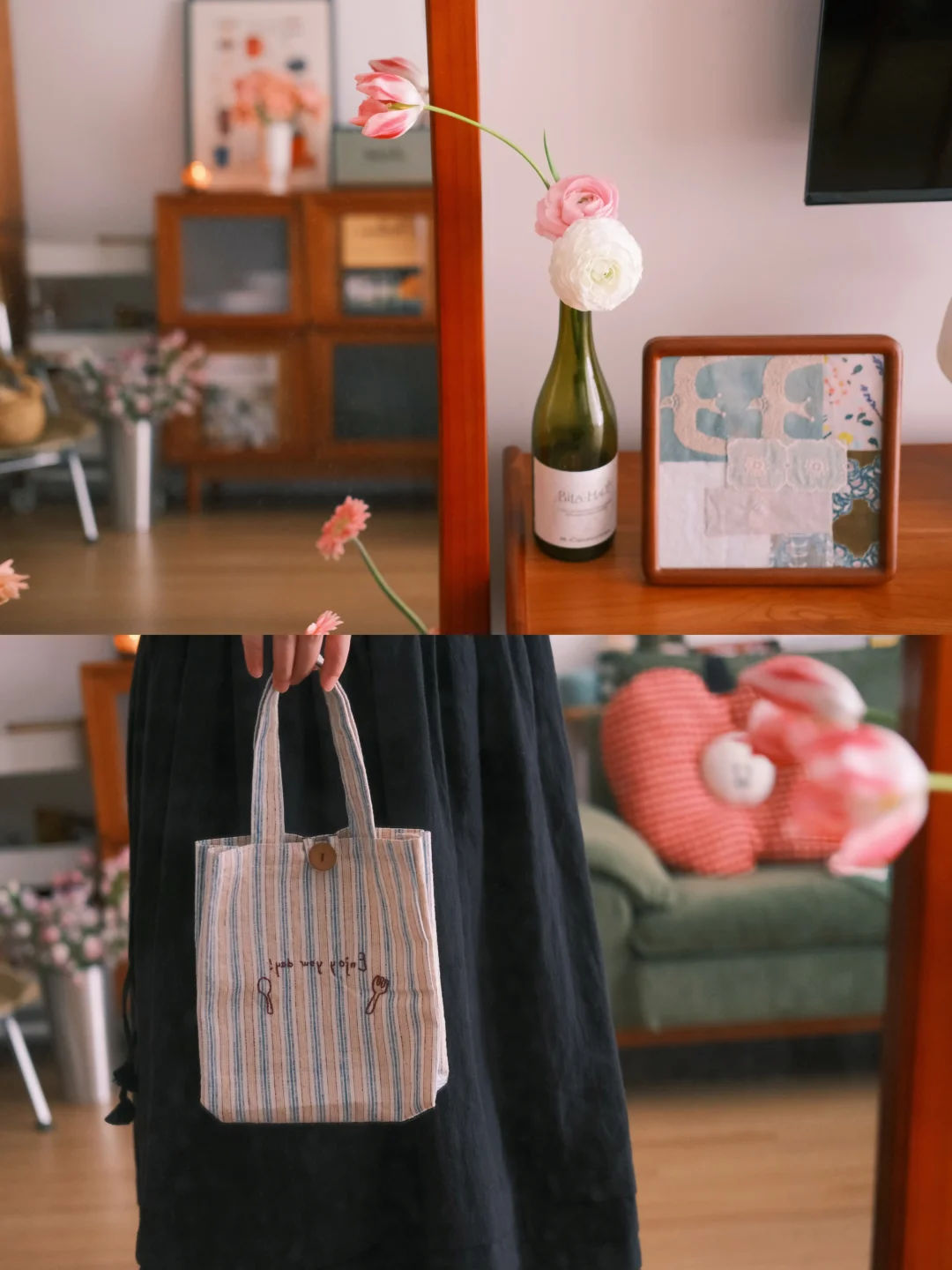 喜欢春天的家 有茶有花~ 最近沉迷买土布 手缝了一只小布袋子🪡