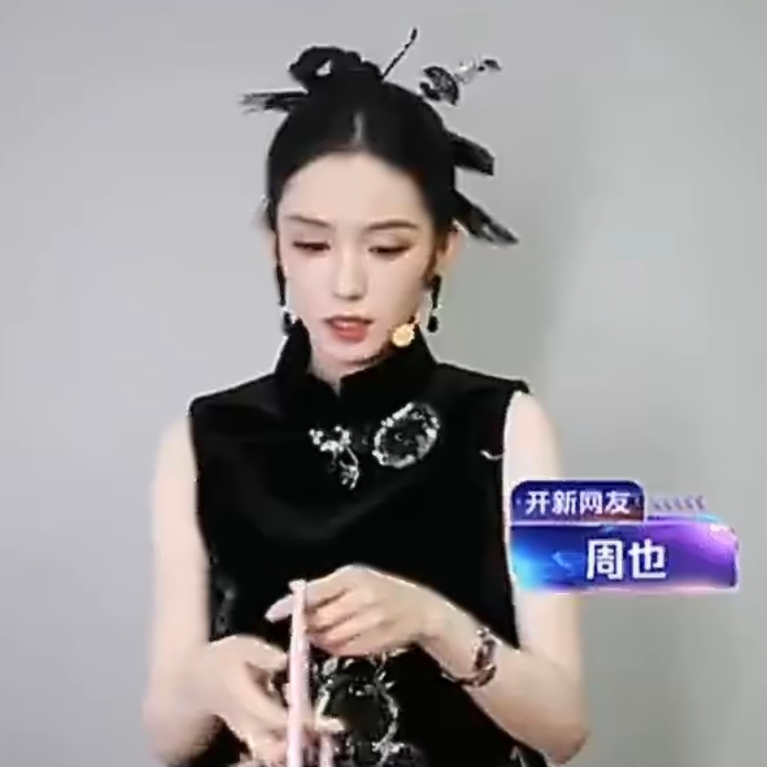 黑色系国风服饰的沉稳质感与冷调妆容形成巧妙呼应,既强化了自带的疏离感又通过精致剪裁勾勒出飒爽身姿,最终呈现出“三分疏离七分贵气”的冷冽气质,被网友盛赞为“冷脸造型界最严厉的母亲”,精准捕捉到这份独特魅力。无论是路人偶遇的随手拍还是活动现场的生图直出,周也的造型都做到了360度无死角。冷白肤色在黑色服饰的衬托下更显亮眼,多则认证账号与网友纷纷感叹“视频生图永远抗打”再次印证了她“骨相天花板”的实力。