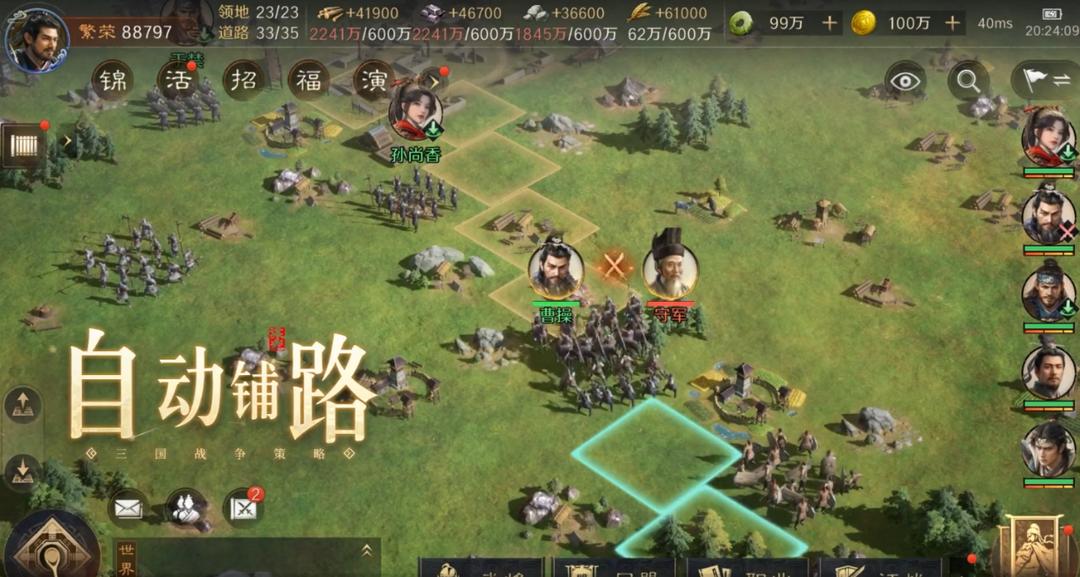 除了充值方面的优势,这游戏还有其他很多吸引人的地方。自动化操作减负,自动铺路、打城和政务委任系统,让玩家不用一直手动操作,节省了不少时间和精力。城内自带资源地和练兵所,稳定了资源获取,部队还能自动升级。
