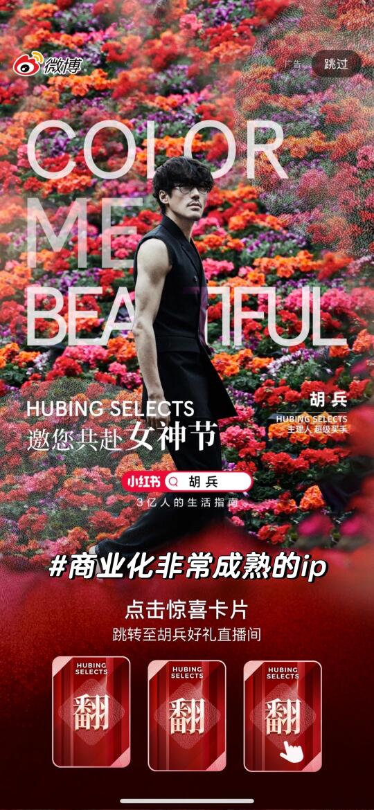 依托成熟的商业运作和媒介投放经验,胡兵不光在站内进行商业投放,更成为首个在微博投放广告,且能够直接跳转到直播间的超级买手