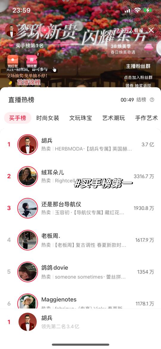 就如胡兵通过直播以及多种平台玩法,实现首场开播后,持续以每小时3亿超高热度保持在买手榜第一名,成为首个完成"内容-流量-商业"全链路的明星IP。