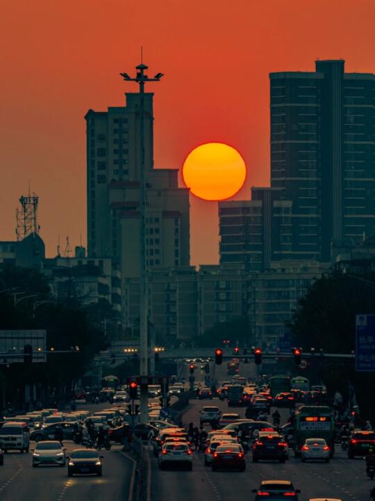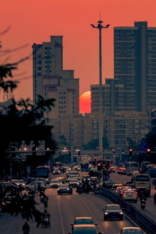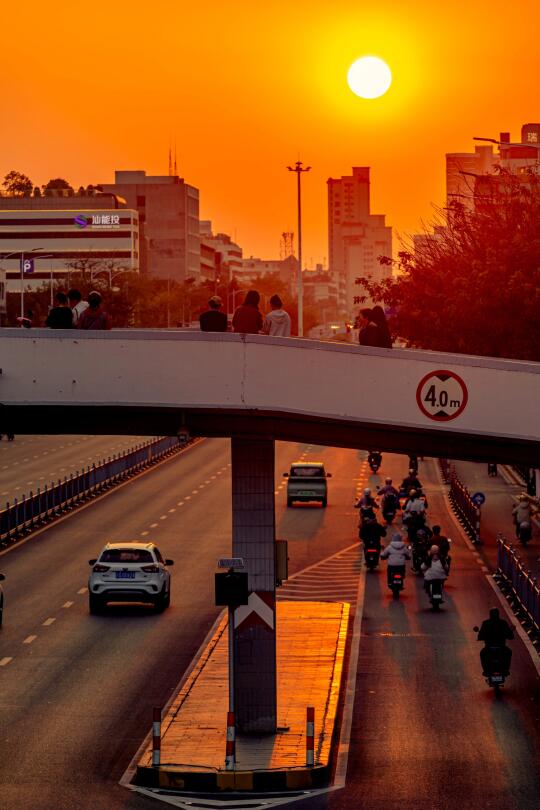 鹅蛋黄般的太阳缓缓下山,它的光芒依然耀眼,仿佛在告别白昼。这一幕让人感受到了壮丽与宁静,仿佛时间在这一刻停滞。 * 🧭:金砂中路与龙眼南路交叉口的天桥上