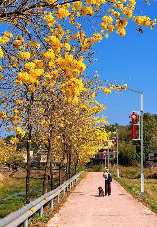 故事的小黄花 从出生那天就开始飘着…… 河源的限定浪漫黄风铃花开啦🌼 简直就是春天的代名词 建议下午4:00左右到,穿白色裙子,或者带一点黄色元素,真的出片📷 花有期,春不误,春日限定浪漫,就等你来打卡啦✨ 位置:东源县龙尾村黄花风铃花道长廊