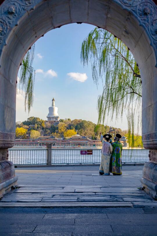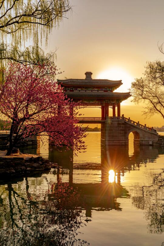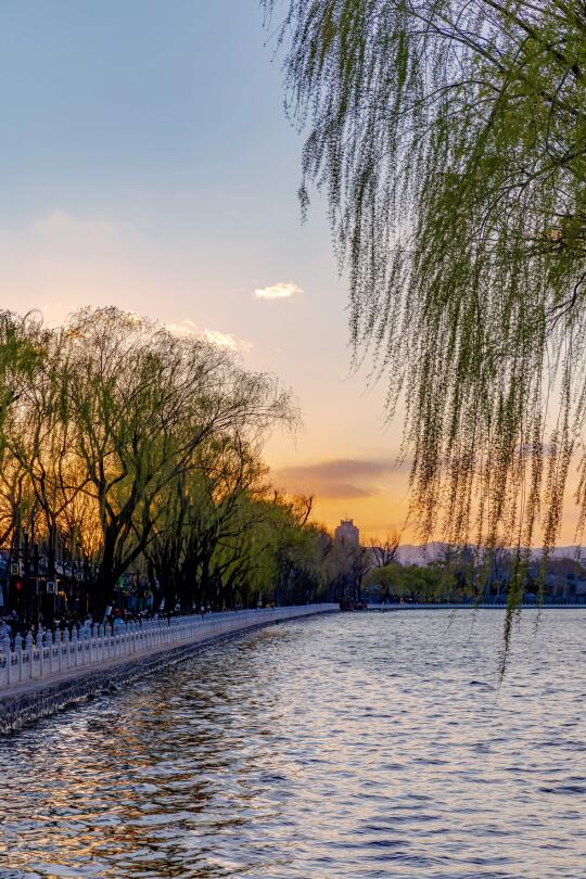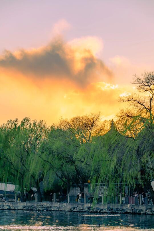 2️⃣北海公园(图3.4.5):夕阳下的杨柳醉成烟!