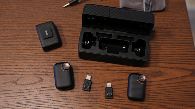 【使用体验】配备吐司造型充电收纳盒,收纳便捷,发射器仅重23克,支持背夹与磁吸双佩戴方式,稳固贴合衣物不易滑落。标配四合一转接器,无缝适配手机、相机、电脑,发射器单次续航20小时,总续航超40小时,满足长时间专业创作。