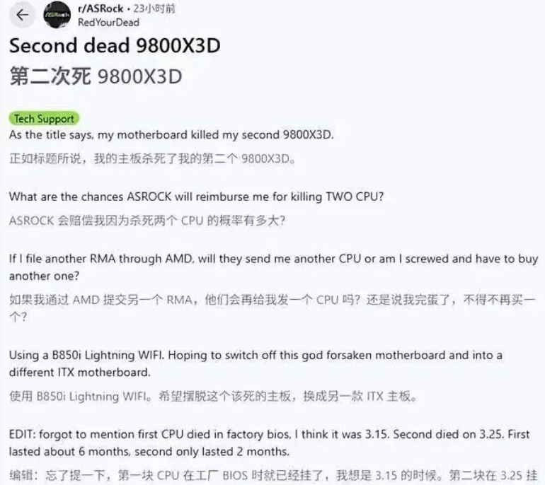 责任划分更是一笔糊涂账。AMD一口咬定是主板厂没按规矩调BIOS,华擎却暗戳戳暗示“是AMD的PBO技术有问题”,两边各说各的,连个统一的说法都没有。用户想讨个说法,连该找谁说都搞不清,更别提透明的解决方案了。