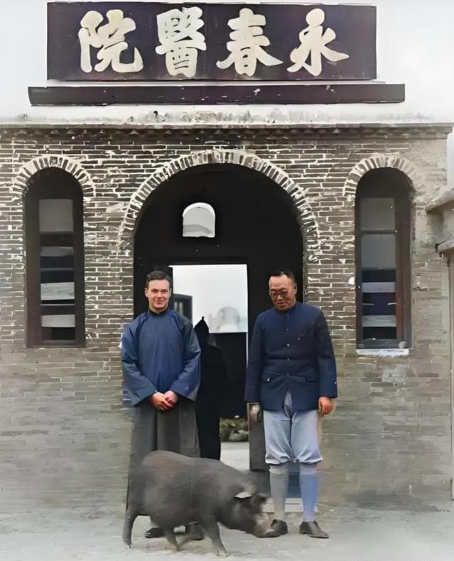 民国时期,一位外籍医师与一位中国医生正站在永春医院大门前,满怀喜悦地准备留下一张具有纪念意义的合影。正当相机镜头即将定格这一珍贵瞬间之际,一只憨态可掬的猪儿不期而至,仿佛是大自然派遣的欢乐使者,不经意间闯入了画面,瞬间吸引了所有人的注意,这一幕突如其来的插曲,为原本庄重的留影增添了几分诙谐与生动。