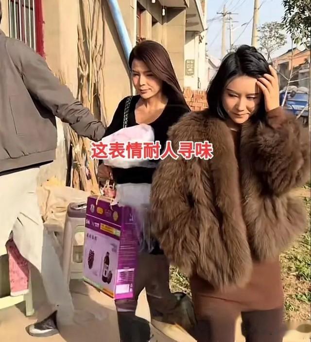 姐姐穿着也讲究,棕色外套,紧身裤,抬眼的瞬间,眼神复杂,像有话,话到嘴边又咽回去,然后低头,一只手半挡着脸,眼神飘来飘去。