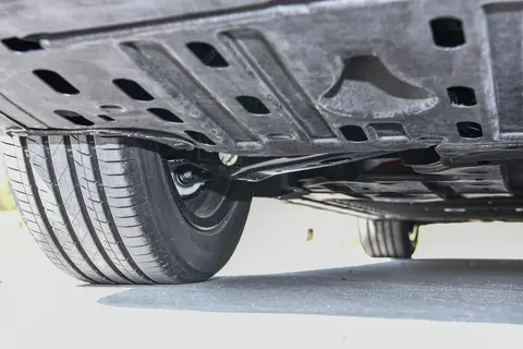 对家用车来说,“好开、稳当”永远是最核心的需求,这点启源A06确实没让人失望,尤其是底盘和悬挂上的投入,在同价位里算得上是“降维打击”。前双叉臂+后五连杆的全铝合金悬挂组合,本来是中高端车型才有的配置,长安却直接下放到了10万级的区间里。这种配置带来的好处很实在,车身重量大幅降低的同时,刚性反而提升了不少。我开车过弯的时候,能明显感觉到车身的支撑性很足,不会有那种晃悠悠的松散感;遇到路面颠簸或者减速带的时候,滤震效果也远超同级,坐在车里不会觉得颠簸得难受。