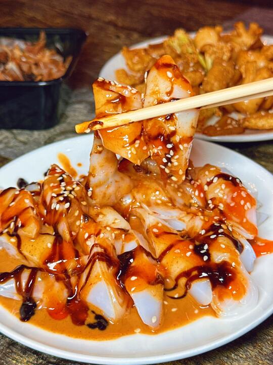 这个真的是每次来店里都必安排的,有花生酱,甜辣酱,甜面酱,酱料真的很多,搭配Q弹的猪肠粉,真的好好吃🤤