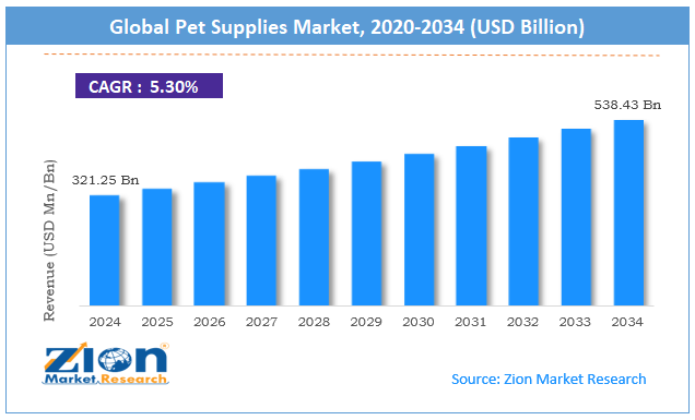 全球宠物用品市场的规模在2024年估测约为3212.5亿美元,预计到2034年将增至约5384.3亿美元,期间几年将以约5.30%的复合年增长率保持稳步增长。