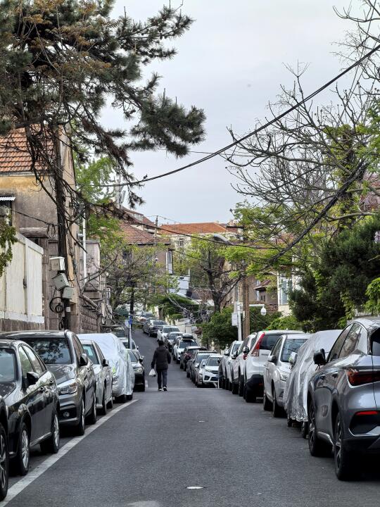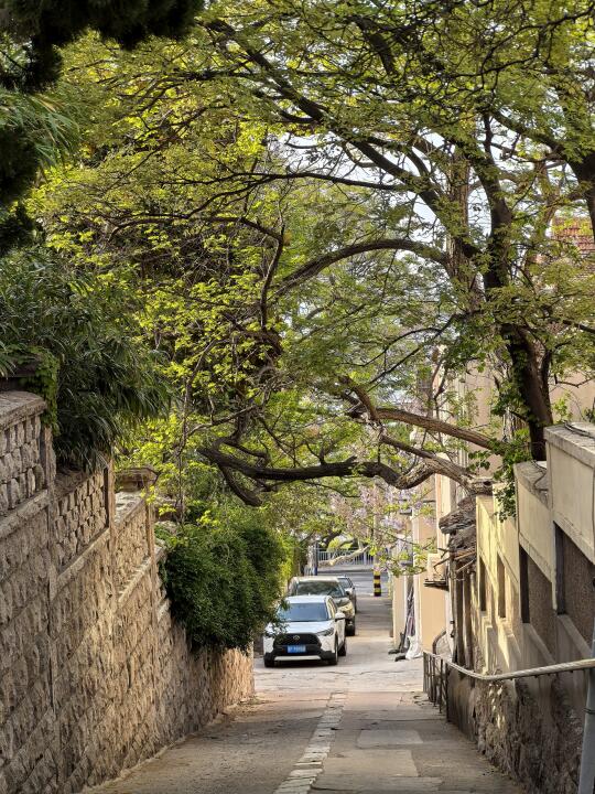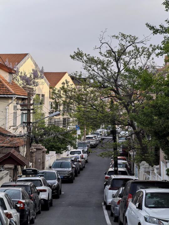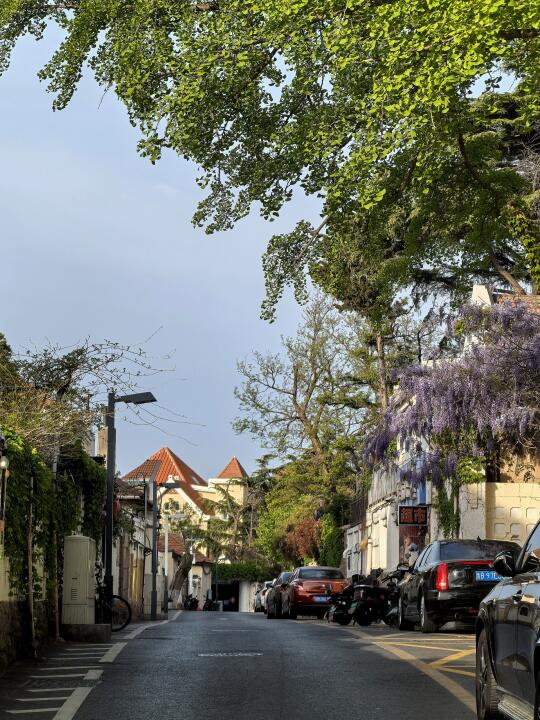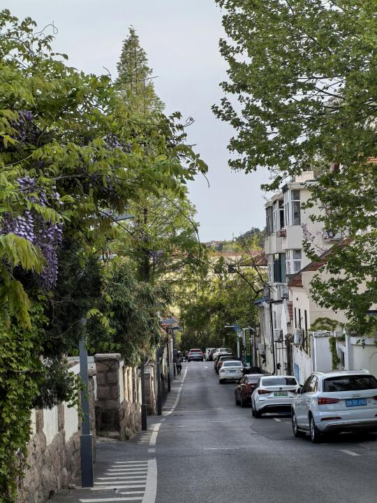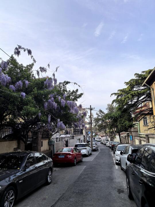 青岛老城紫藤花开例如金口路随处可见