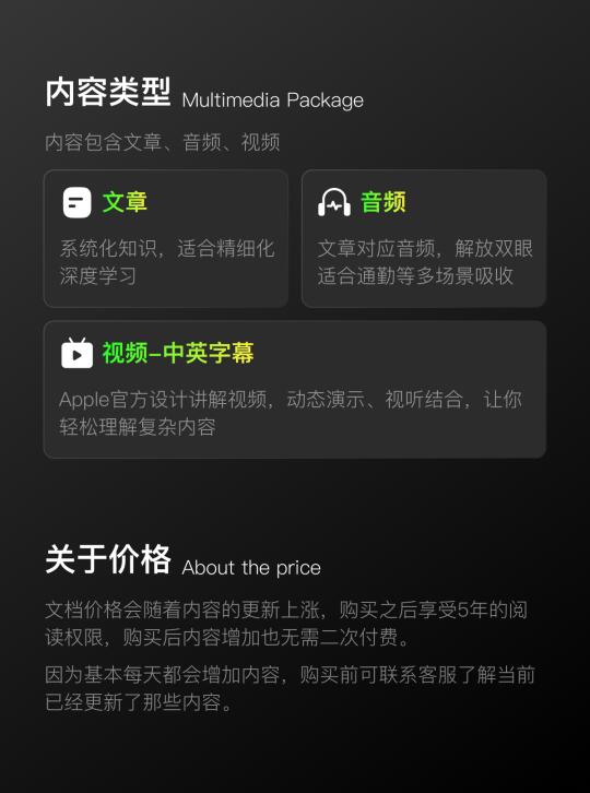 选择全球优质内容,主要包含Apple、Google这类顶级企业的设计文档(包含文章、音频、视频)。 从基础原则到体验思考,帮你掌握Apple、Google的设计哲学与核心理念。 这些文档,可为初学者快速建立专业系统的设计思维,轻松超越同行! ui ux设计 交互设计 Apple 设计师 设计文档
