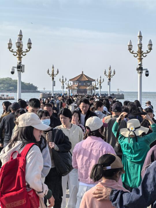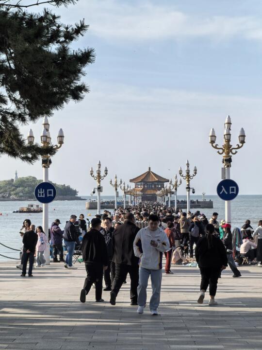 5.3青岛栈桥景区早七点实况 好多聪明人