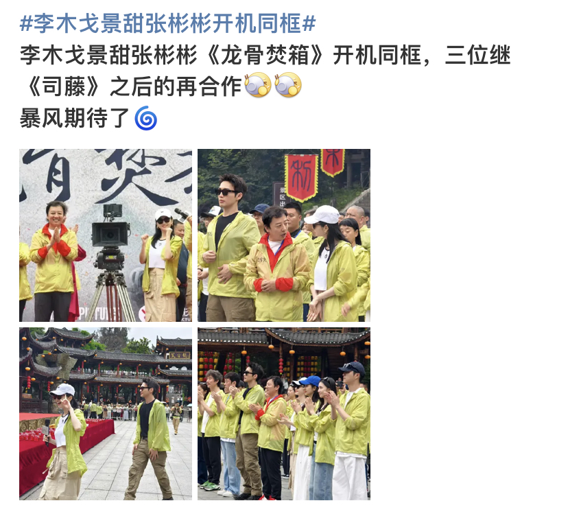 粉丝们的考古热情瞬间被点燃。有人翻出《司藤》的经典片段:"当年秦放给司藤撑伞的名场面,我到现在还反复刷!"更有网友发现细节:"开机照站位和《司藤》杀青照刚好反过来,导演这是要搞回忆杀啊!"社交媒体上#李木戈景甜张彬彬开机同框#的话题迅速冲上热搜,讨论量呈指数级增长。