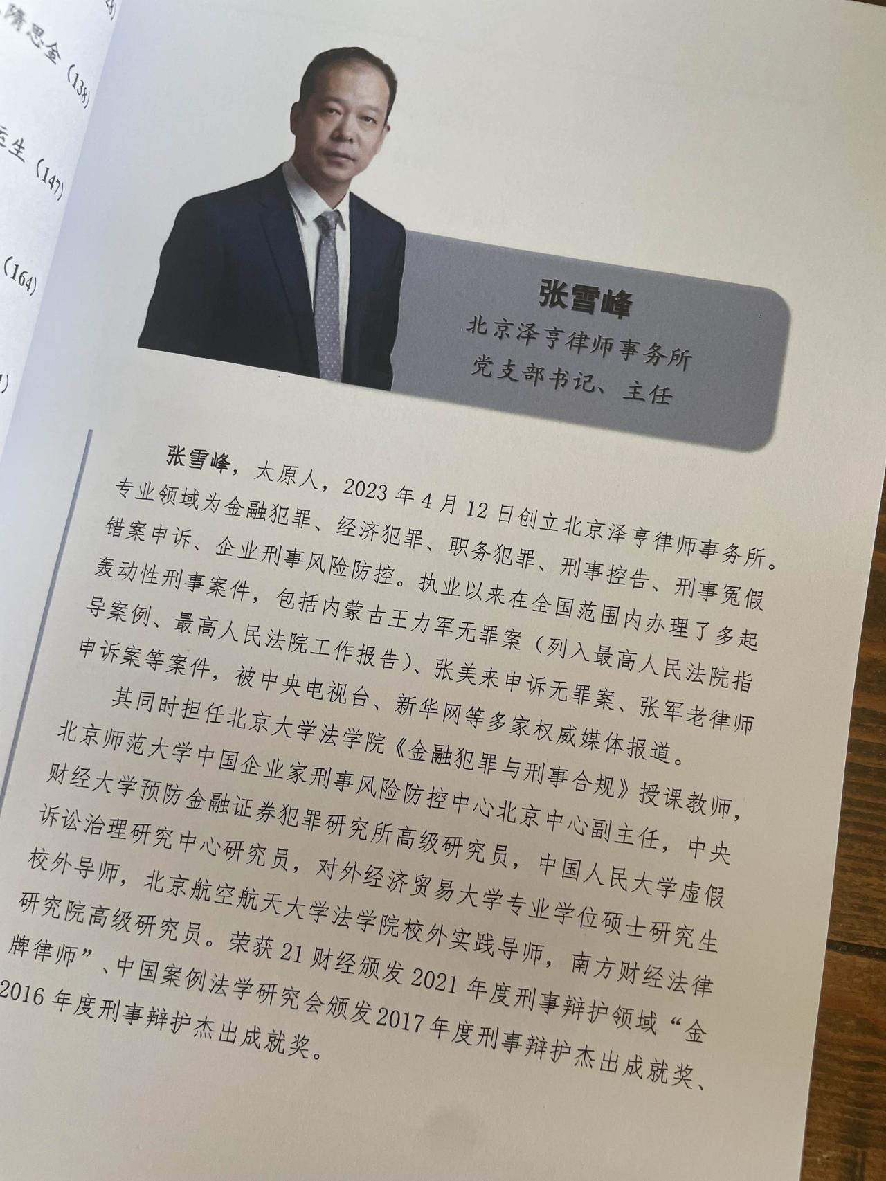 北京泽亨律所成立两周年庆典暨“民营企业保护的法治化路径”高峰论坛,收到《北京泽亨律所无罪案例选编》,这么多刑案被判无罪,泽亨律所厉害了👍 图为泽亨律所创始人张雪峰律师
