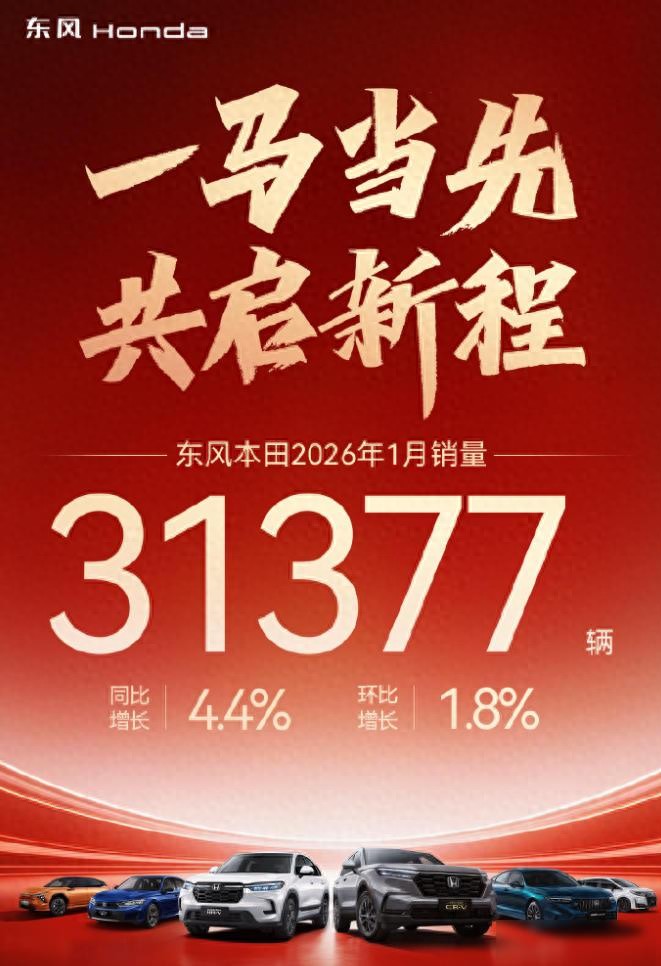 2026年2月,东风本田在官方微博上发布了一张海报,说他们1月份卖了31377辆车,比去年同期增长了4.4%,还特别提到CR-V车型卖出了19141辆,看起来销售情况很不错,但同一天,母公司东风汽车集团发布的产销快报显示,东风本田1月的实际销量只有12567辆,和海报里的数字相差将近1.9万辆。
