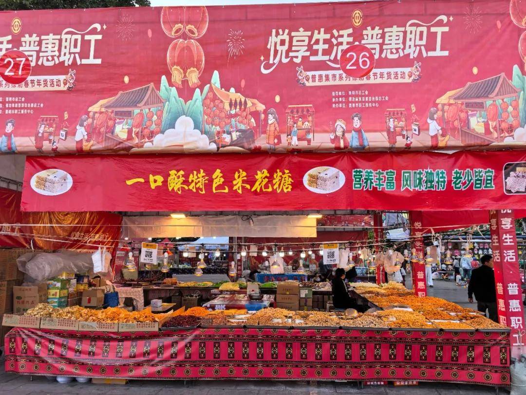冬日的暖阳,照耀着禄劝洋溢喜庆的民族文化广场。2月9日至20日,“工会有礼·福满禄劝”——昆明市总工会“悦享生活·普惠职工”普惠集市系列活动在这里火热举行。这场由昆明市总工会主办,市职工服务中心协办,禄劝彝族苗族自治县总工会承办的新春盛宴,以“数字引流+实体体验”“趣味游园+实惠消费”“文化传承+生活服务”的创新闭环模式,将琳琅满目的年货、独具特色的文化、实实在在的优惠与“娘家人”的暖心服务,一并送到了禄劝广大工会会员和居民群众的家门口,为禄劝广大职工群众呈现了一场多维立体的新春盛宴。