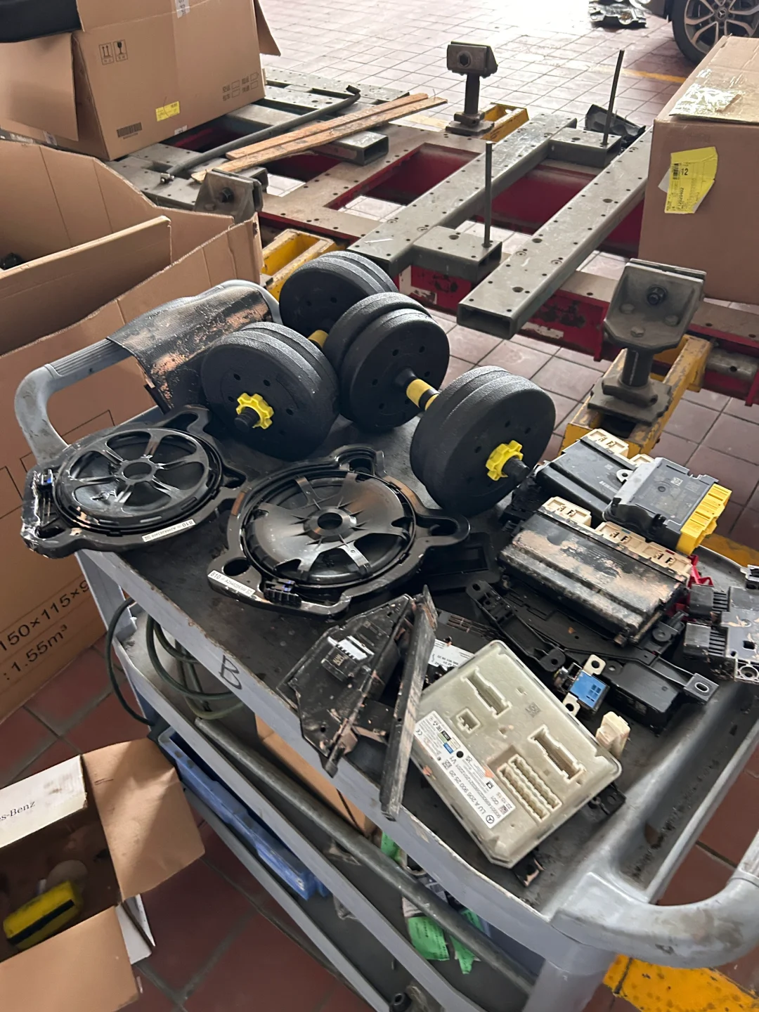 相信大家都已经看得出来这是奔驰哪款车了吧,由于下雨的时候车主没有把车停好。[笑哭R][笑哭R]目前得到了一张5万左右的定损单。 详情还没出来,出来详情以后我再来更新,目前损坏的电脑是已经更换了,还有两个座椅电脑,以及一些喇叭和线束。目前车子还在修,4s店也提供了代步车(宝马五系)。 [笑哭R]车友用实际证明告诉大家,在暴雨天气的时候,车子尽量停到高处!!