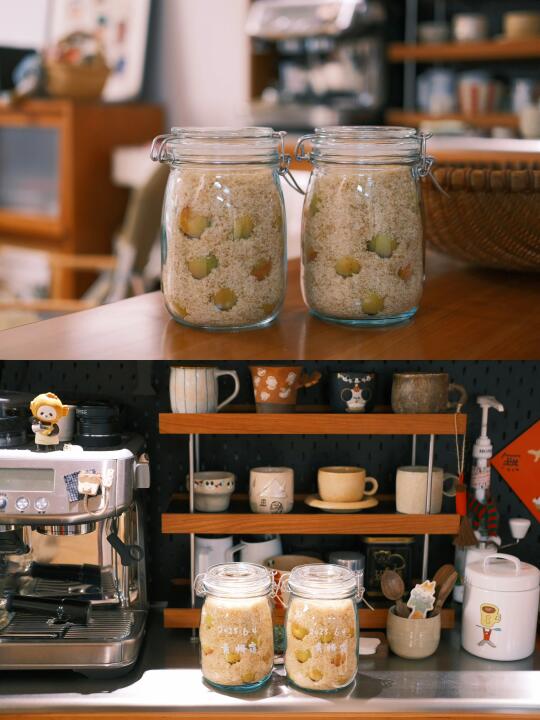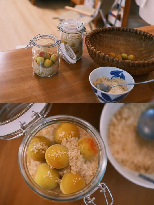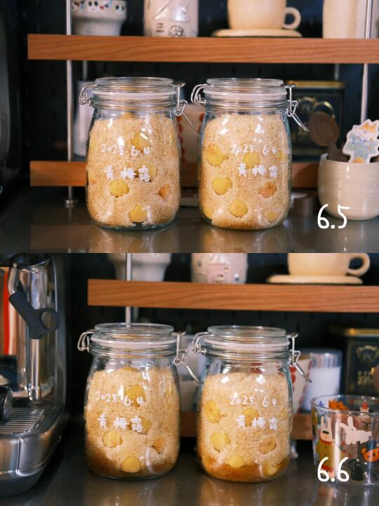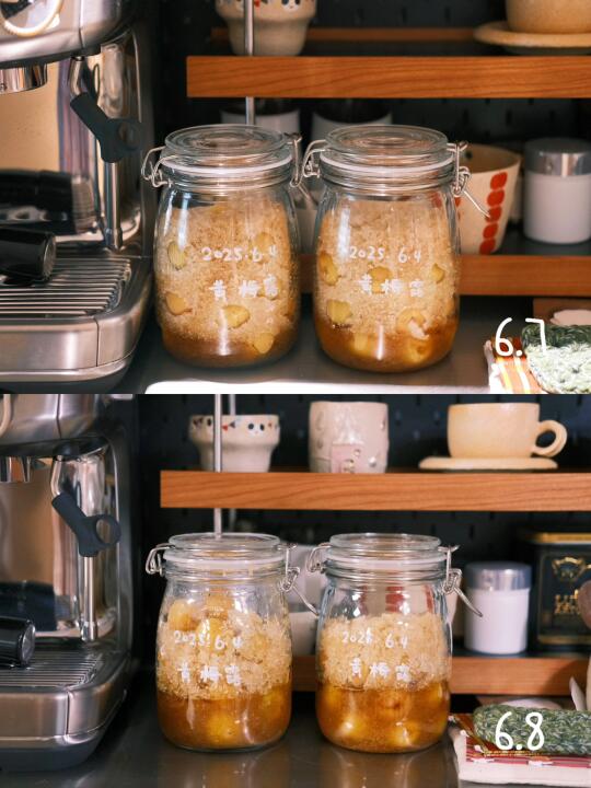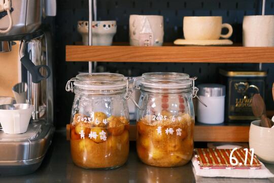 入梅了 泡了一周的黄梅露 冰糖刚化成糖水 第一次泡梅子露 希望能成功[举手R]