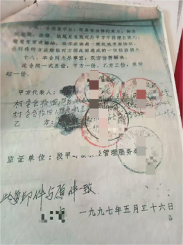 村民介绍,该信号塔建设时由当年时任村支书李某松经手签字,但多年来,村民多次向有关部门反映该问题,均未得到明确答复。这份合同复印件无法证明补偿款的合法去向,希望相关部门能够核查信号塔占地的真实补偿标准、补偿款总额以及最终流向。