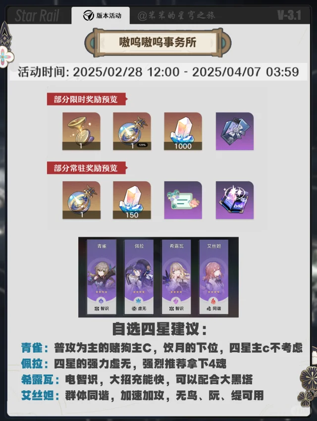 🐱大家好,我是笨笨的铲屎官 3.1大版本活动上线了 超级可爱的奇美拉打工活动 直接抄作业即可,按笨笨提供的配队上工 最快速度拿满所有奖励